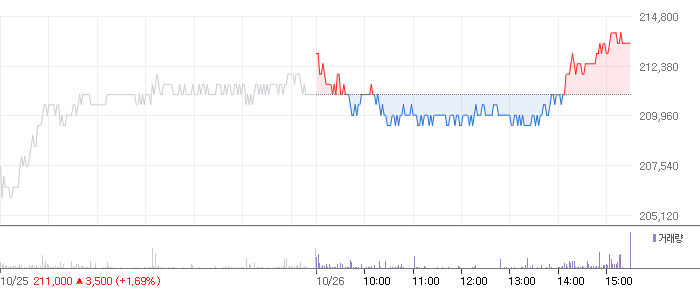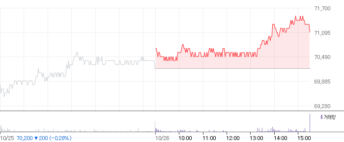 <삼성전자 2021.10.26 기준(장마감) 기준 당일 주식 차트>