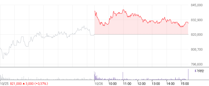 <LG화학 2021.10.26 기준(장마감) 기준 당일 주식 차트>