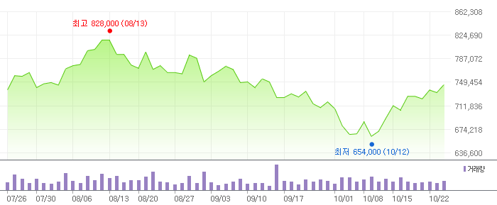 아래는 삼성SDI의 일간, 3개월 주식 변동 차트입니다.