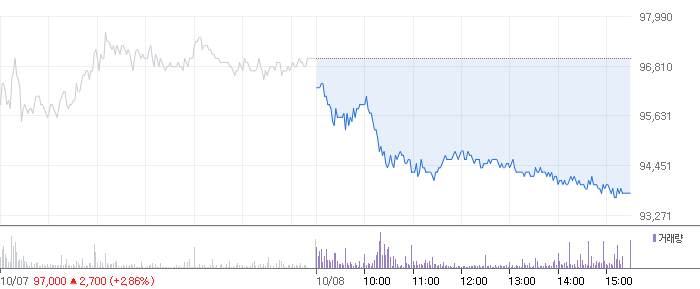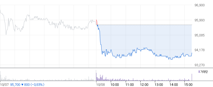 <SK하이닉스 2021.10.08 기준(장마감) 기준 당일 주식 차트>