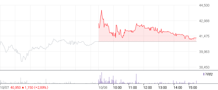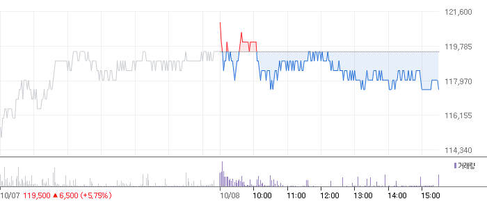 <한국조선해양 2021.10.08 기준(장마감) 기준 당일 주식 차트>