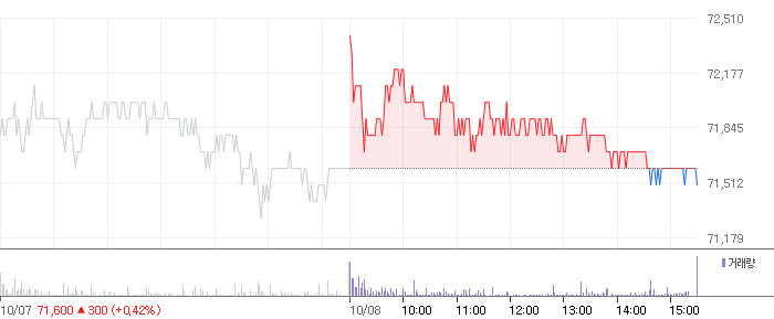 <삼성전자 2021.10.08 기준(장마감) 기준 당일 주식 차트>